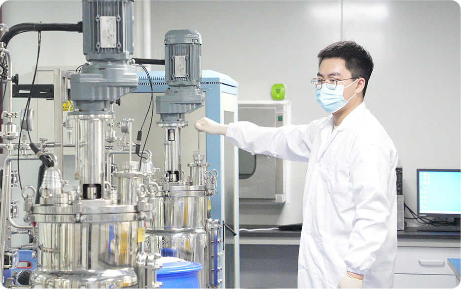 由發(fā)酵實驗室、檢測實驗室組成,配置有5L-50L-100L-1000L的不同體積的發(fā)酵罐,以及多種精密檢測儀器,進行從0-1-10的發(fā)酵工藝放大,為工業化生產蘡定基礎條件。